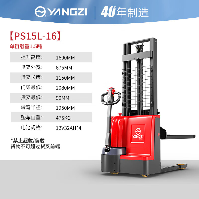 揚(yáng)子全電動(dòng)堆高車PSL,智能手柄舒心操作,加強(qiáng)型油缸/防撞緩沖設(shè)計(jì)/品牌電池
