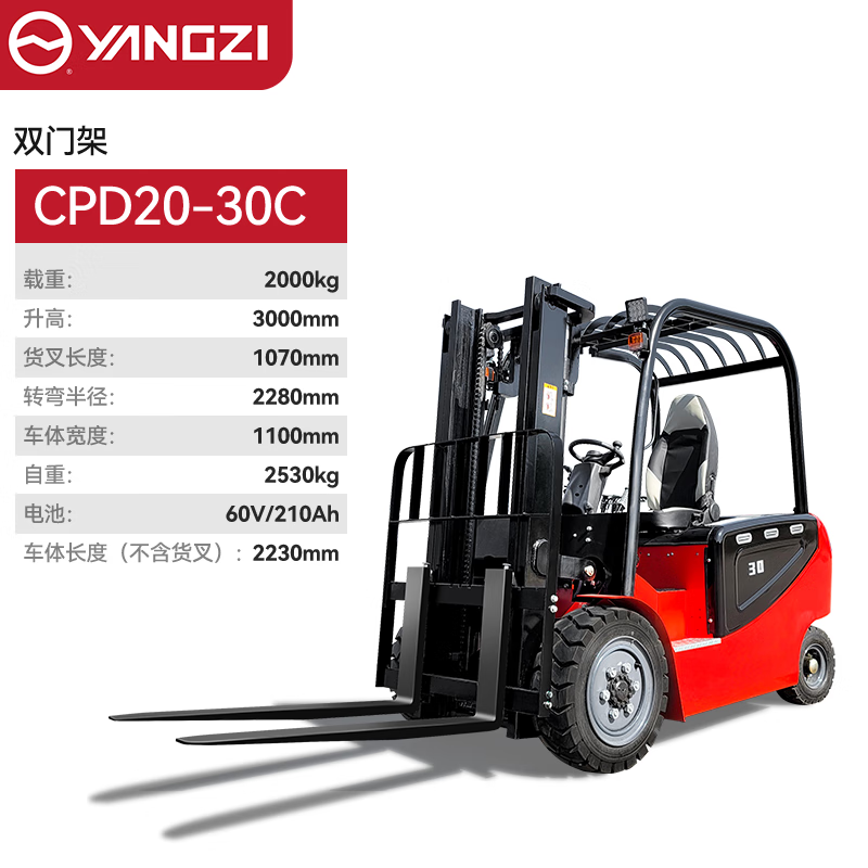 揚子座駕式平衡重叉車CPD-C,高效免維護AC電機,大容量蓄電池組/汽車操控方式/多功能顯示屏