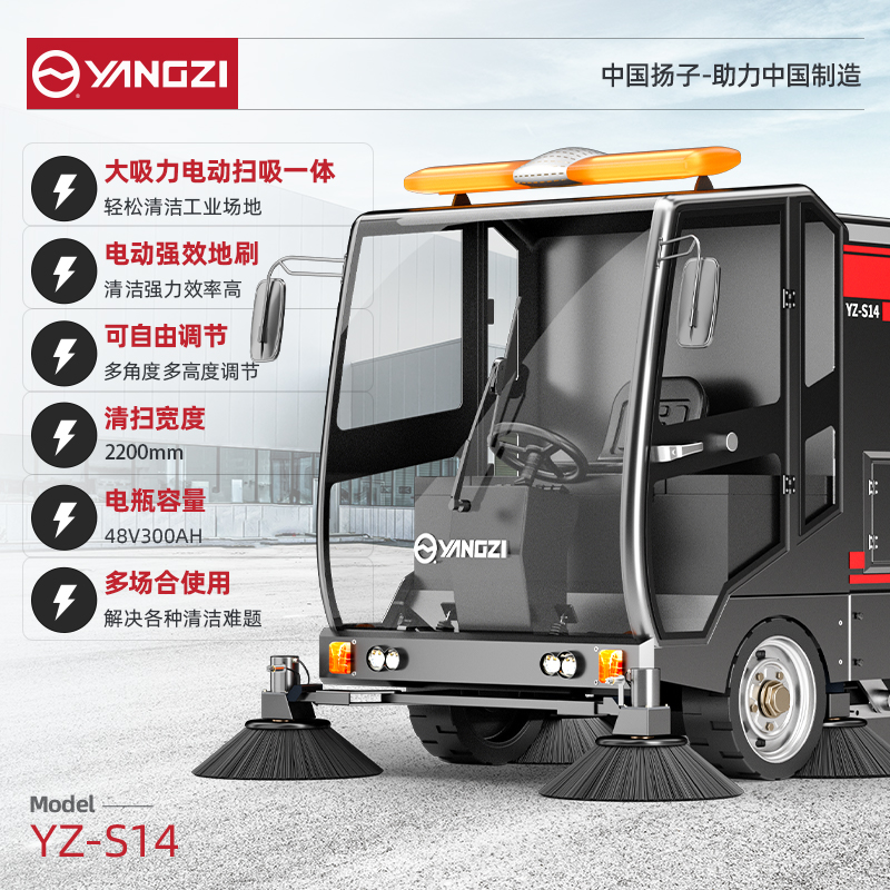 揚子掃地機YZ-S14,加寬清潔直徑,領(lǐng)域廣泛應(yīng)用城市街道,一鍵操作 /掃吸二合一/高穩(wěn)定性電控/倒車影像/全車LED大燈/高壓沖洗裝置