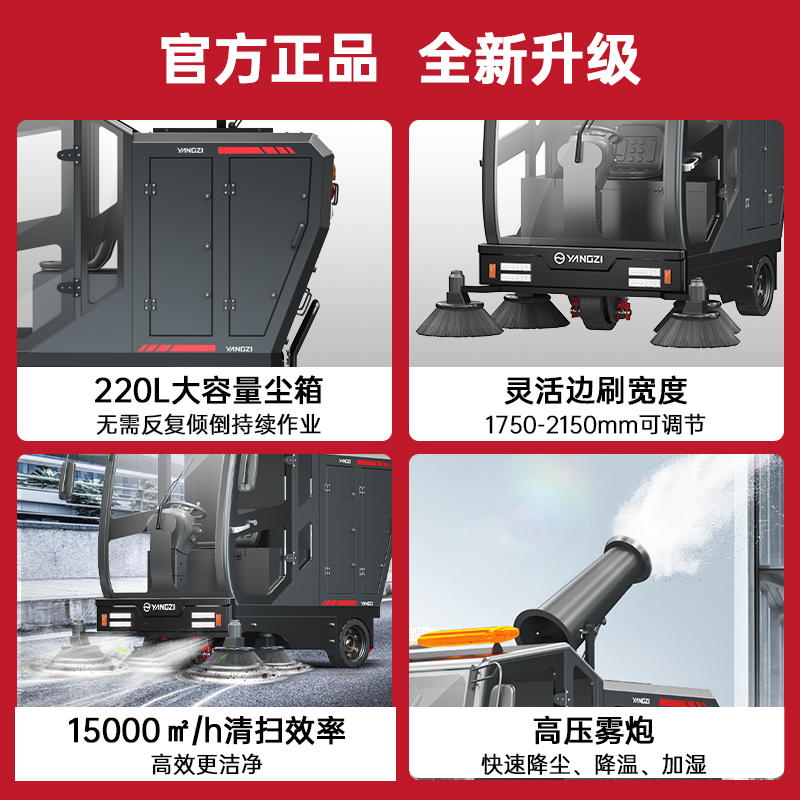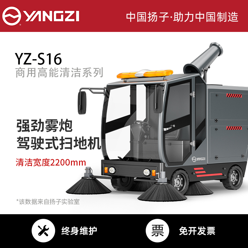 揚子掃地機YZ-S16,全封閉清掃車,強效清掃,省時省力,掃吸二合一 /無水珠全程霧引/輕松爬坡/簡易控制面板/強勁電機/LED大燈
